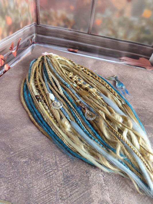 Boho Dreads with Blondes and Blues Accents - Unique Loose Ends