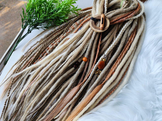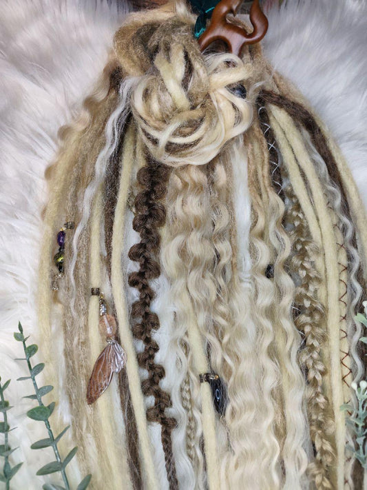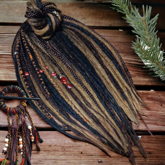 Boho Chic Brown Blond and green Synthetic Crocheted Dreads Extensions Forester inspired Set