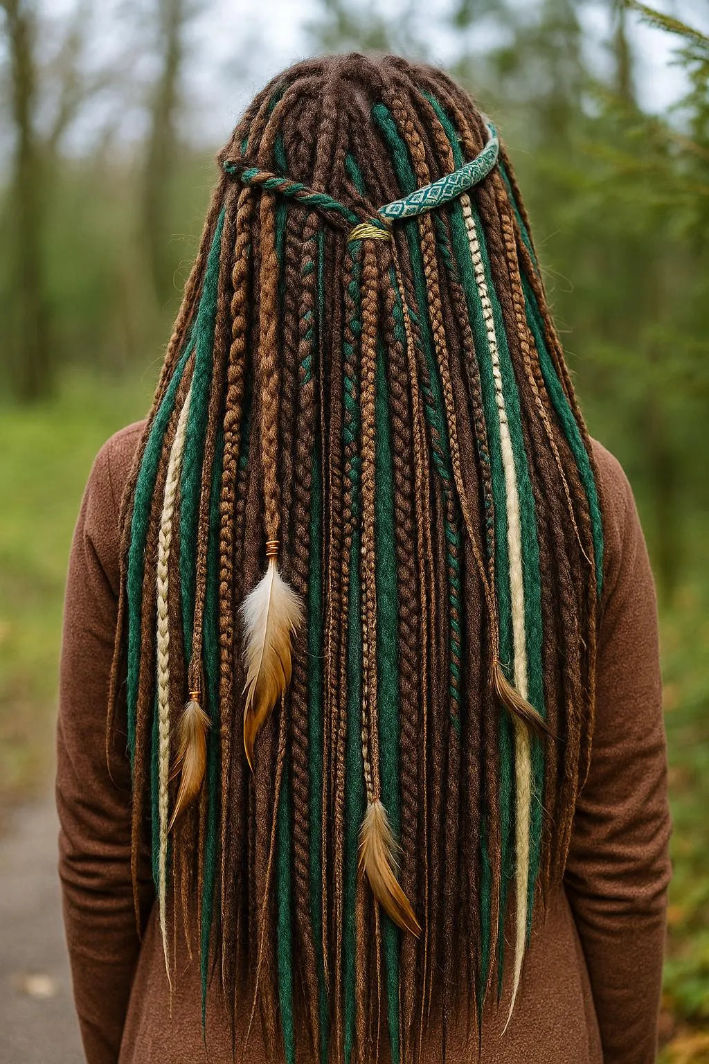 Brown, Blonde & Green Double Ended Boho Fake Dreads – Forest Inspired Set