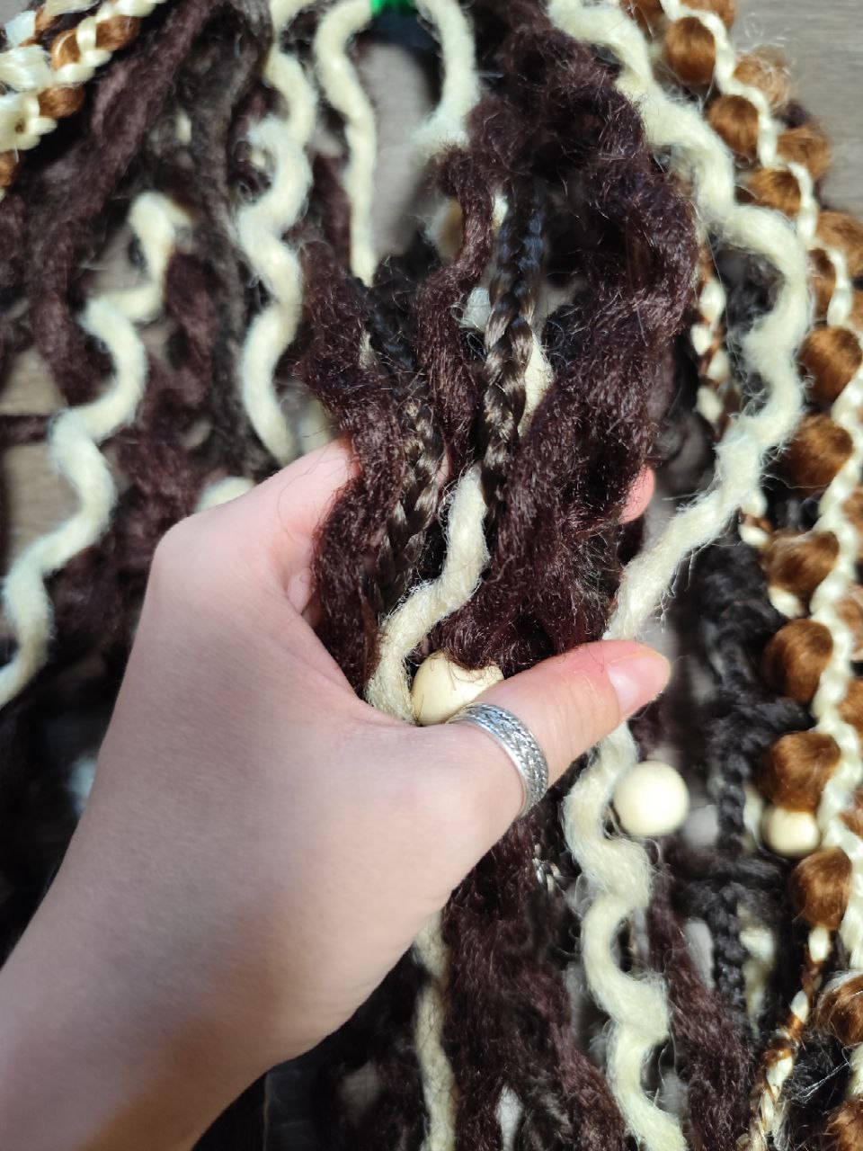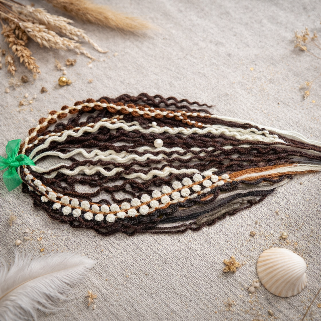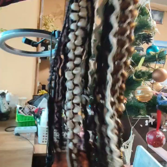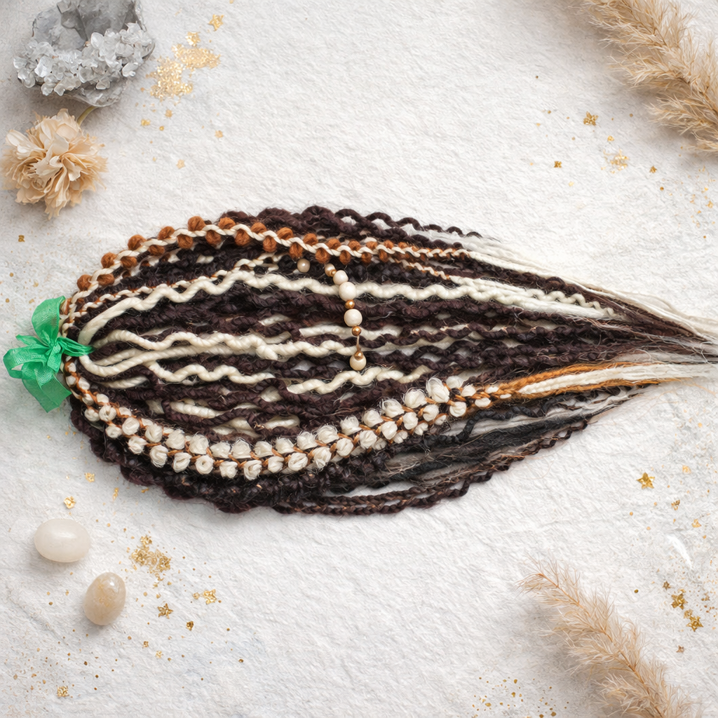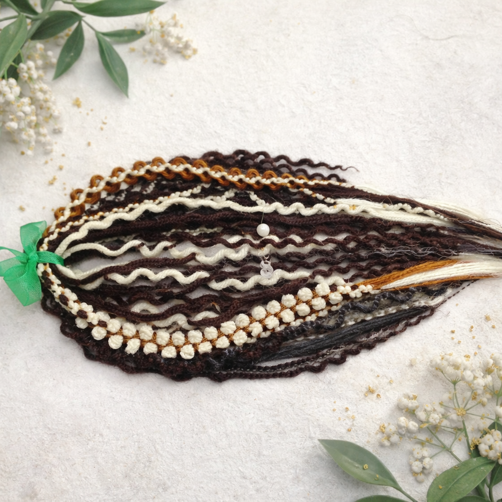 Boho Curly Dreads Dark Brown & Cream – Double Ended Synthetic Dread Extensions
