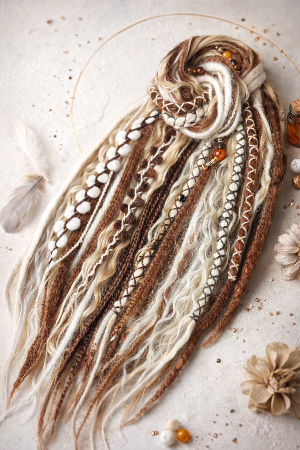 Warm Brown & Blonde Double Ended Boho Fake Dreads with Loose Curls